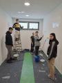 Engagement in den Ferien: Schülerinnen und Schüler der 10b streichen die Mädchenkabine der Turnhalle neu