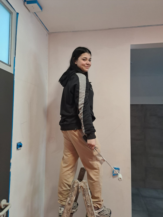 Am 05. und 06. Februar haben neun Schülerinnen und Schüler der Klasse 10b gezeigt, dass freiwilliges Engagement an unserer Schule nicht nur möglich, sondern beeindruckend wirksam sein kann. Während andere die Ferien zur Erholung nutzten, griffen Jeremy Engel, Leandros Markou, Maximilian Meyer, Paul Schmidt, Jakob Sparing, Mary Schlicht, Joleen Wegener, Elise Scheuch und Sophia Gaßmann zu Pinsel und Farbrolle, um die Mädchenkabine der Turnhalle frisch zu renovieren.