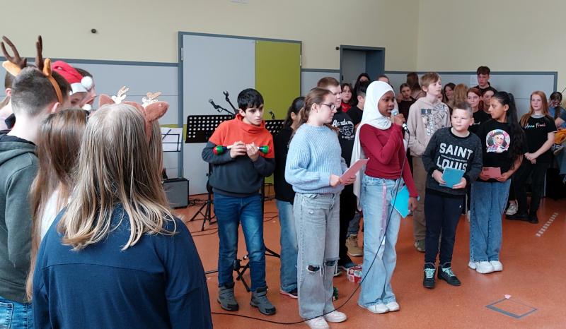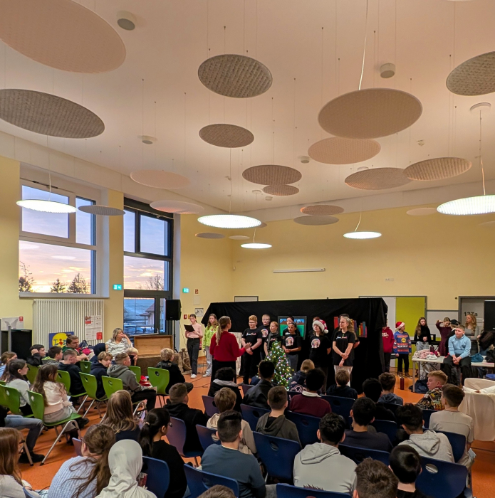 Unser Chor, unter der Leitung von Frau Gärtner, erfüllte die Aula mit weihnachtlichen Klängen.